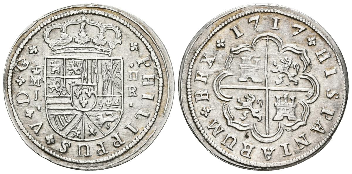 FELIPE V (1700-1746). 2 Reales (Ar. 5,59g/28mm). 1717. Madrid J. (Cal-2019-770). EBC.