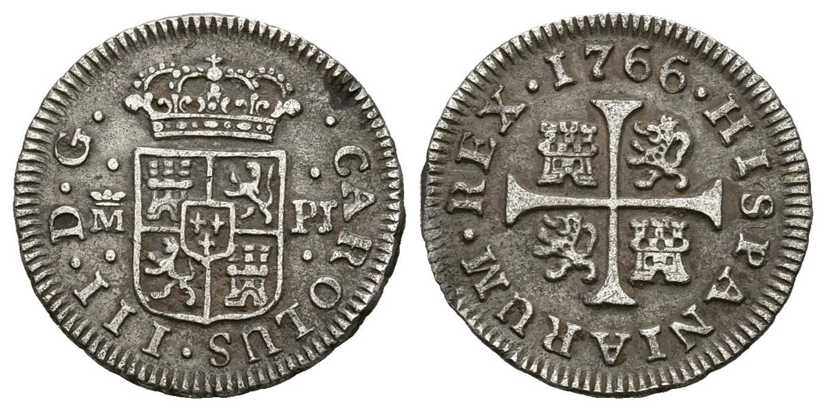 CARLOS III (1759-1788). 1/2 Real. (Ar. 1,40g/15mm). 1766. Madrid PJ. (Cal-2019-153). MBC.