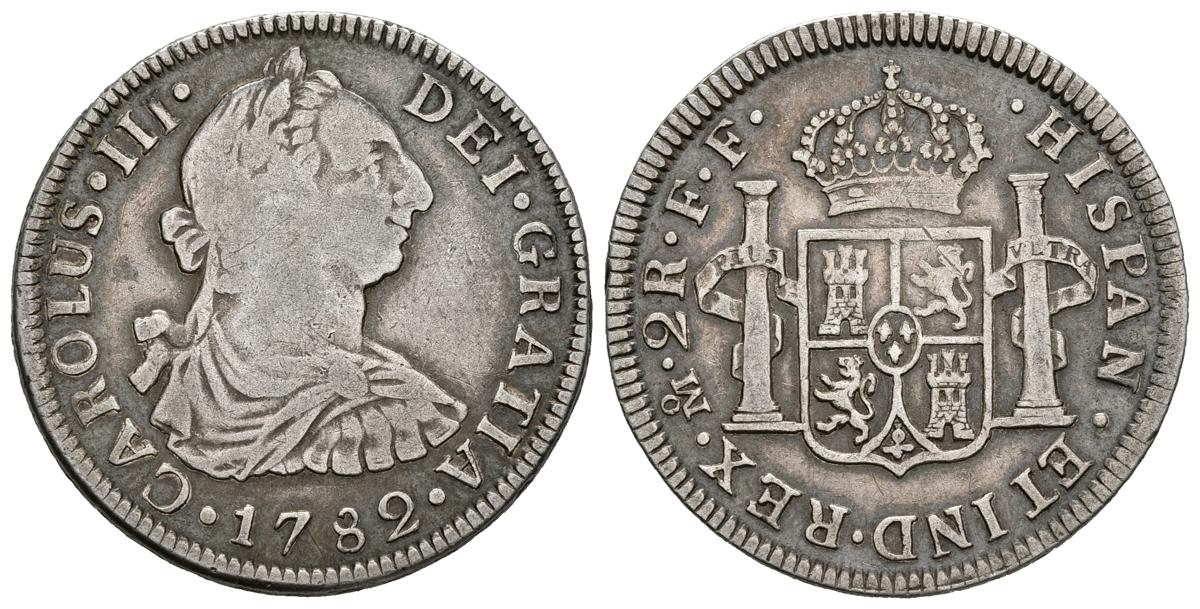 CARLOS III (1759-1788). 2 Reales. (Ar. 6,55g/28g). 1782. México FF. (Cal-2019-672). MBC-/MBC.