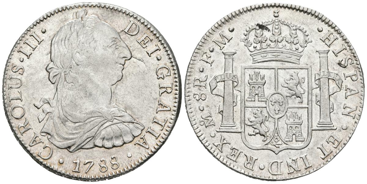 CARLOS III (1759-1788). 8 Reales. (Ar. 26,97g/39mm). 1788. México MF. (Cal-2019-1132). MBC+/EBC-.