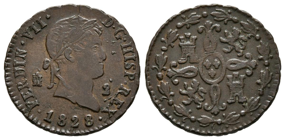 FERNANDO VII (1808-1833). 2 Maravedís. (Cu.2,42g/19mm). 1828. Segovia. (Cal-2019-150). MBC+.