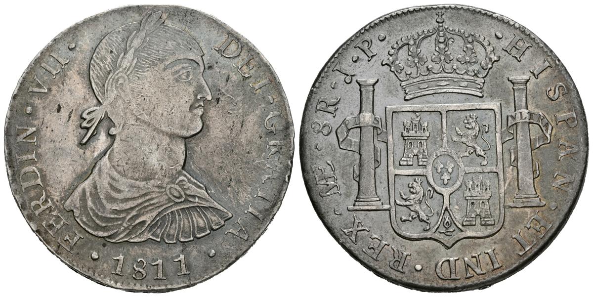 FERNANDO VII (1808-1833). 8 Reales (Ar. 26,72g/39mm). 1811. Lima JP. (Cal-2019-1242). MBC+/EBC-. Preciosa pátina y tono.