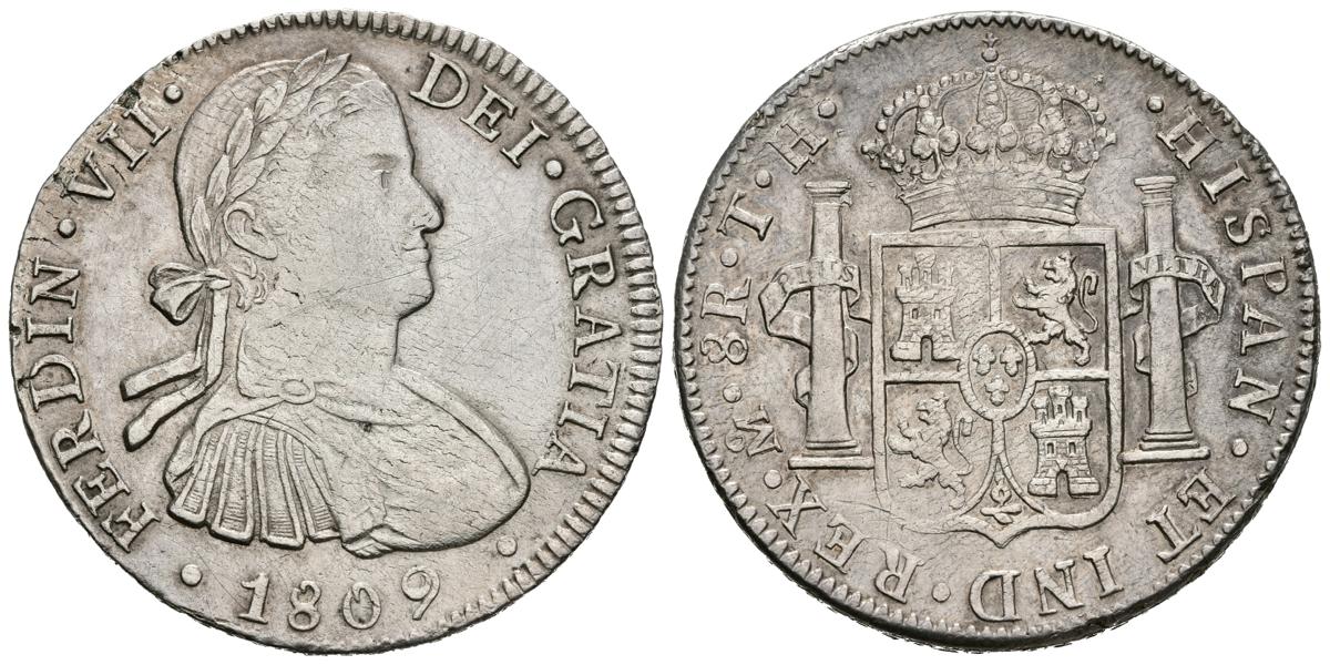 FERNANDO VII (1808-1833). 8 Reales (Ar. 26,90g/40mm). 1809. México TH. (Cal-2019-1308). EBC-. Rayitas y plata agria.