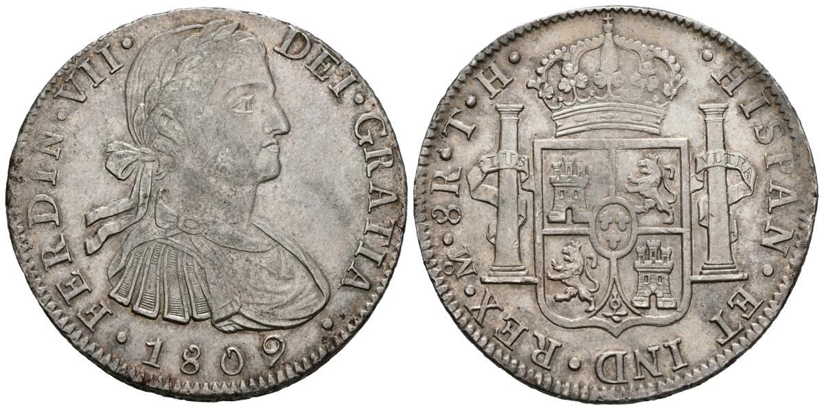 FERNANDO VII (1808-1833). 8 Reales (Ar. 27,01g/39mm). 1809. México TH. (Cal-2019-1308). EBC-. Restos de brillo original.
