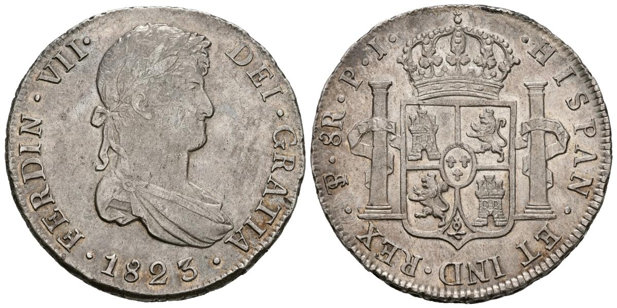 FERNANDO VII (1808-1833). 8 Reales (Ar. 26,97g/38mm). 1823. Potosí PJ. (Cal-2019-1388). EBC-.