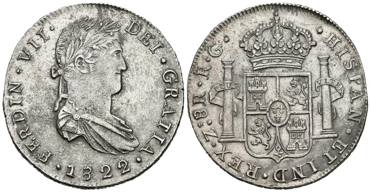 FERNANDO VII (1808-1833). 8 Reales (Ar. 26,84g/38mm). 1822. Zacatecas RG. (Cal-2019-1472). EBC-. Restos de óxido, marquitas.