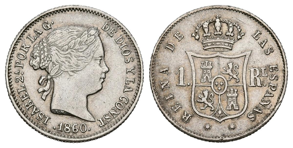 ISABEL II (1833-1868). 1 Real (Ar. 1,29g/13mm). 1860/50. Barcelona. (Cal-2019-285 var). Variante: Sobrefecha. EBC.