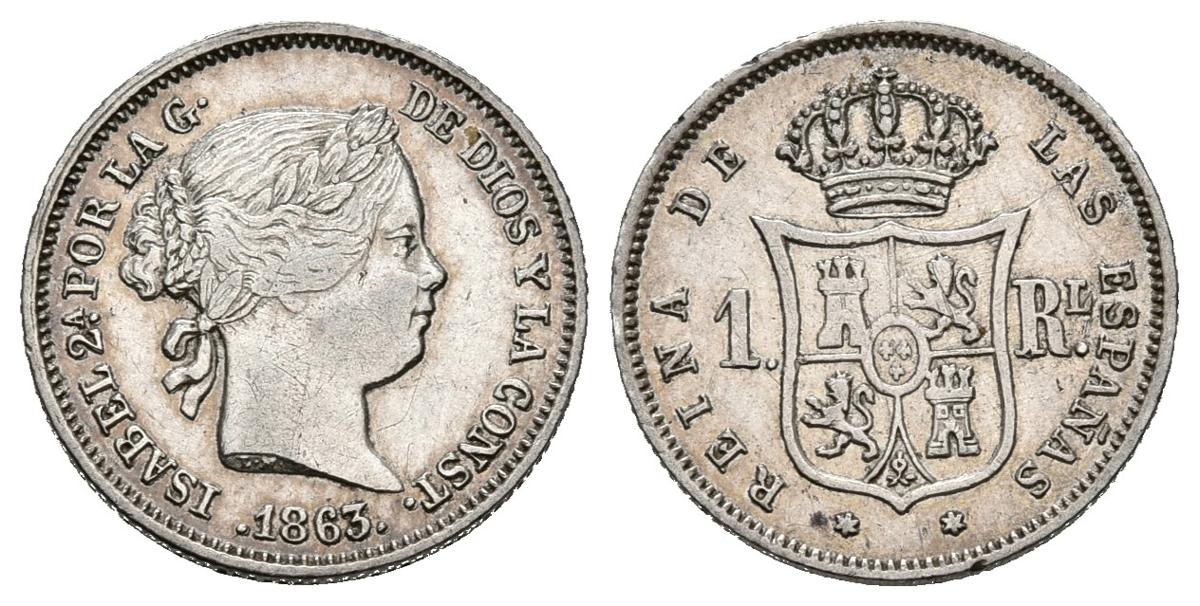 ISABEL II (1833-1868). 1 Reales. (Ar. 1,53g/15mm). 1863. Madrid. (Cal-2019-312). MBC+.