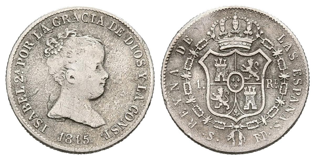 ISABEL II (1833-1868). 1 Reales. (Ar. 1,41g/14,4mm). 1845. Sevilla RD. (Cal-2019-316). MBC-.