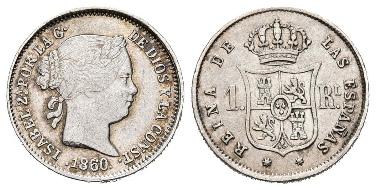 ISABEL II (1833-1868). 1 Reales. (Ar. 1,30g/15mm). 1860. Sevilla. (Cal-2019-331). MBC+.