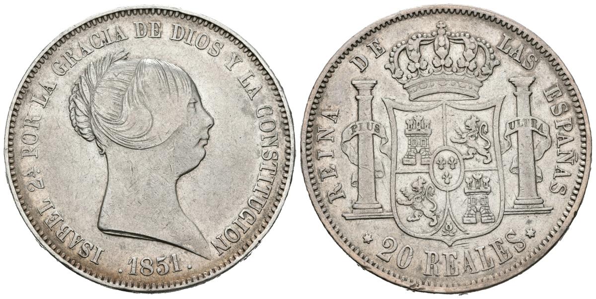 ISABEL II (1833-1868). 20 Reales. (Ar. 25,98g/37mm). 1851. Madrid. (Cal-2019-593). MBC/MBC+.