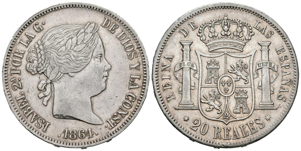 ISABEL II (1833-1868). 20 Reales. (Ar. 25,80g/37mm). 1864. Madrid. (Cal-2019-622). MBC+/EBC-.