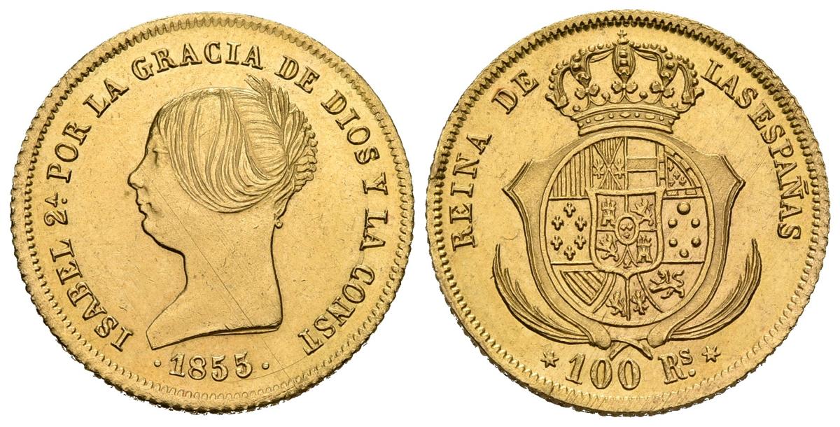 ISABEL II (1833-1868). 100 Reales (Au. 8,33g/22mm). 1855. Madrid. (Cal-2019-781). EBC.