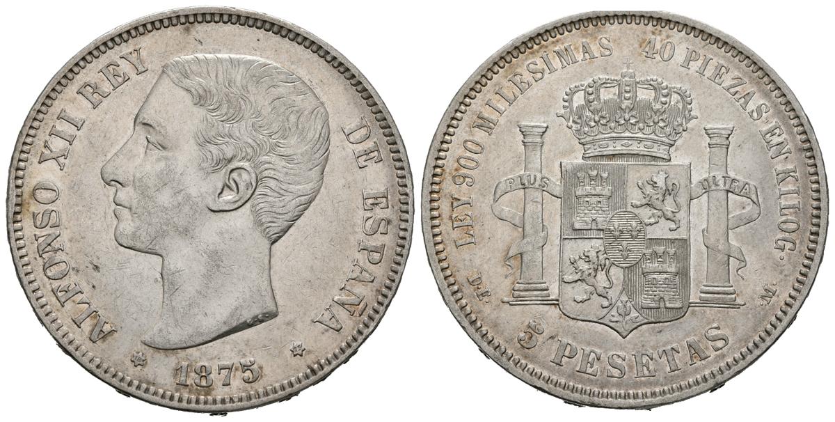 ALFONSO XII (1874-1885). 5 Pesetas (Ar. 25,00g/36mm). 1875 *18-75. Madrid DEM. (Cal-2019-35). EBC. Golpe en canto.