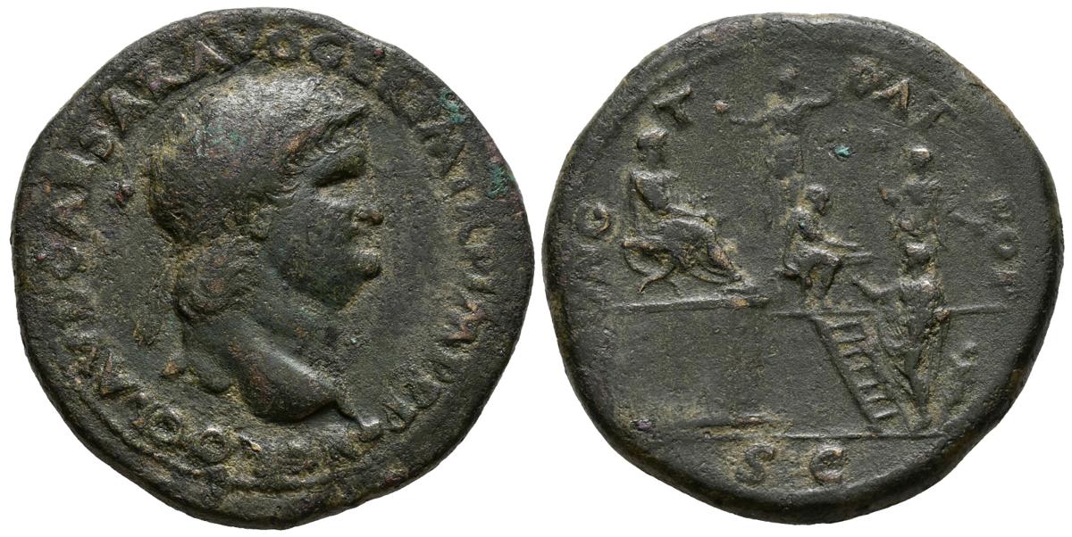 NERON. Sestercio. (Ae. 25,55g/36mm). 64 d.C. Roma. (RIC 153). BC+/MBC-. Muy rara.