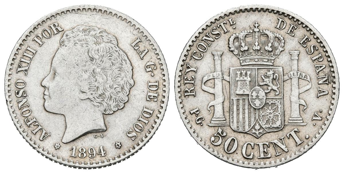ALFONSO XIII (1885-1931). 50 Céntimos. (Ar. 2,47g/18mm). 1894 *18-94. Madrid PGV. (Cal-2019-43). MBC+.