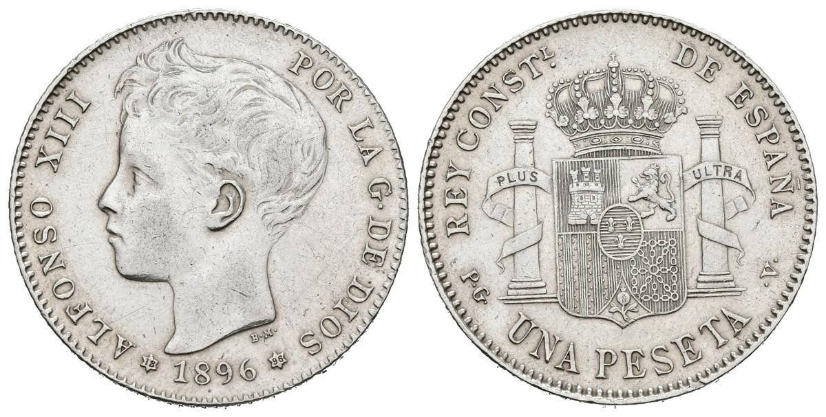 ALFONSO XIII (1885-1931). 1 Peseta. (Ar. 5,03g/23mm). 1896 *18-96. Madrid PGV. (Cal-2019-56). EBC-.