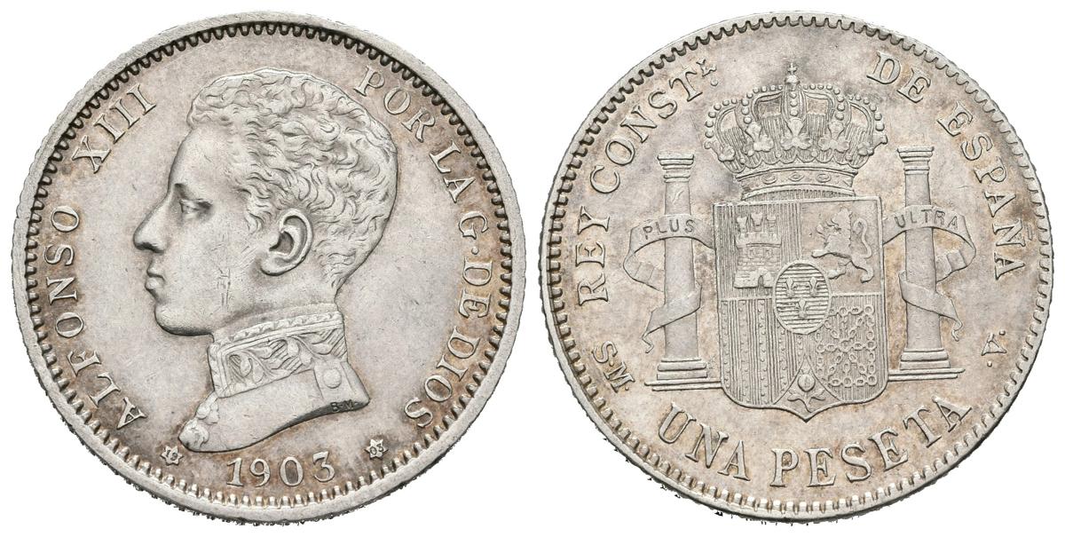 ALFONSO XIII (1885-1931). 1 Peseta. (Ar. 5,01g/23mm). 1903 *1903. Madrid SMV. (Cal-2019-67). MBC+. Levísima marca en canto.