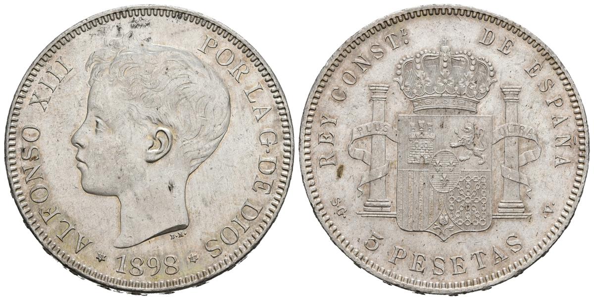 ALFONSO XIII (1885-1931). 5 Pesetas. (Ar. 24,77g/37mm). 1898 *18-98. Madrid SGV. (Cal-2019-109). EBC+.