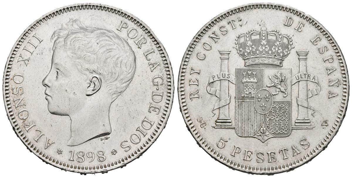 ALFONSO XIII (1885-1931). 5 Pesetas. (Ar. 25,01g/37mm). 1898 *18-98. Madrid SGV. (Cal-2019-109) . EBC+. Golpe en canto.