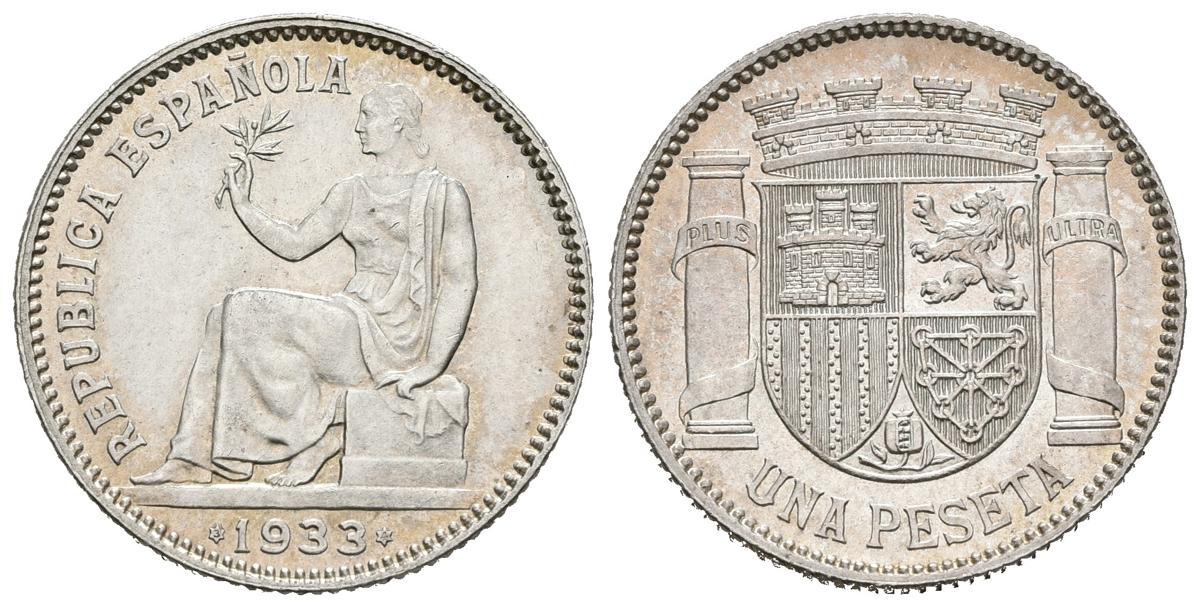II REPUBLICA (1931-19369). 1 Peseta (Ar. 5,00g/23mm). 1933 *3-4. Madrid. (Cal-2019-34). SC.