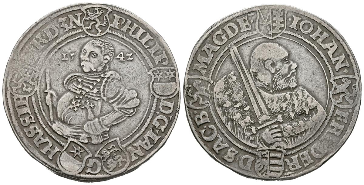 ALEMANIA. Thaler (Ar.28,68g/40mm). 1542. Sajonia. (Schütz 419). Johann Friedrich el Magnánimo y Felipe el Magnánimo de Hesse, 1542-1547. MBC. Rara.