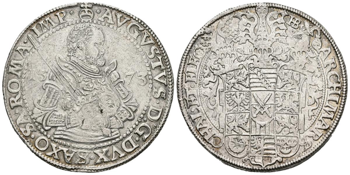 ALEMANIA. Thaler (Ar. 29,06g/40mm). 1573. Saxony August I. Dresden (Davenport 9798; Schnee 725). MBC+