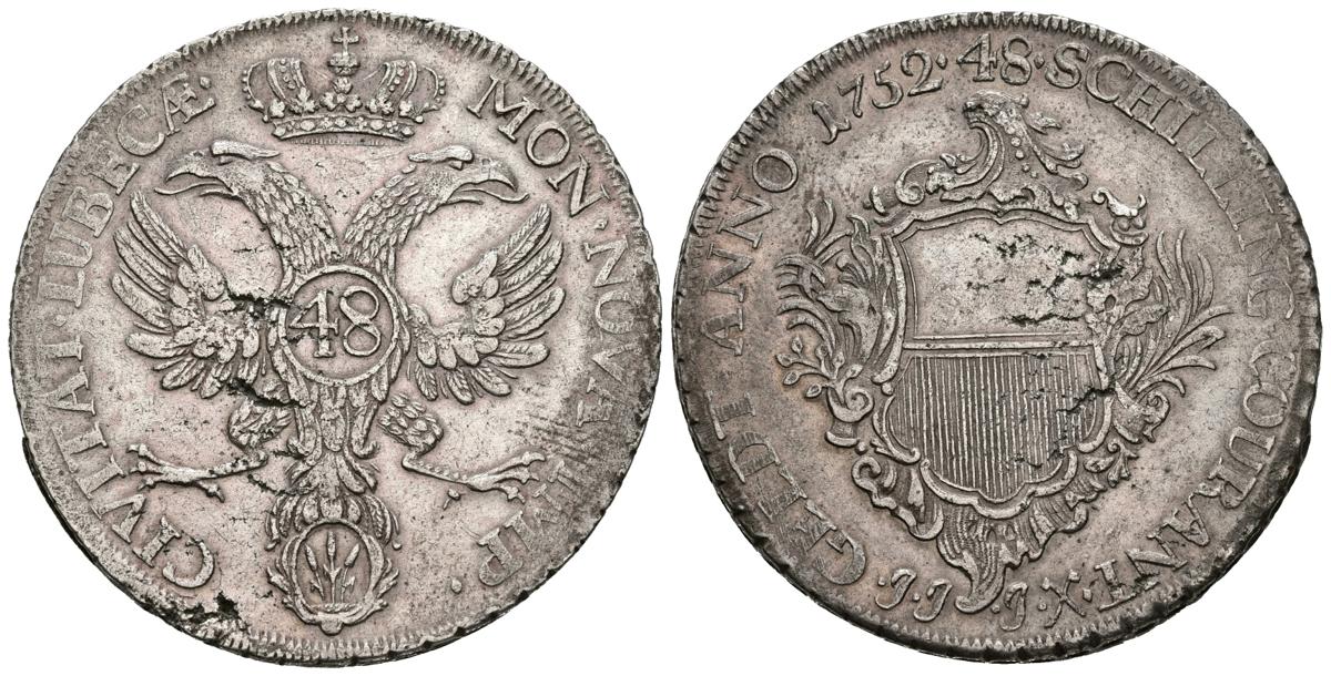 ALEMANIA. 48 Schilling. (Ar. 27,11g/41mm). 1752. Lubeck. (Km#168). MBC.