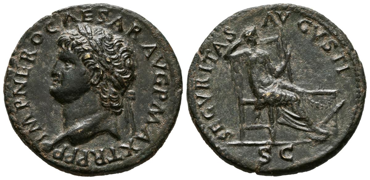 NERON. As. (Ae. 11,50g/29mm). 67 d.C. Lugdunum. (RIC 597). EBC. Limpiada. Raro ejemplar en esta calidad.