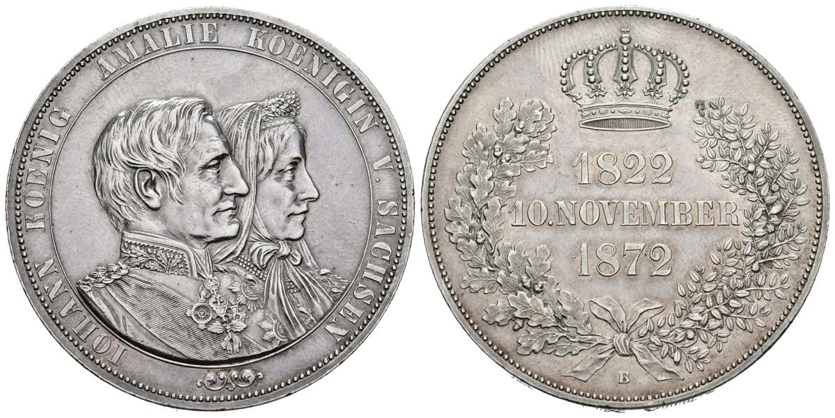 ALEMANIA. 2 Thaler. (Ar. 37,01g/41mm). 1872. Sajonia. Bodas de oro Johann y Amalie ( Km#1231.1). EBC. Canto grabado. Sólo 49.000 piezas acuñadas.