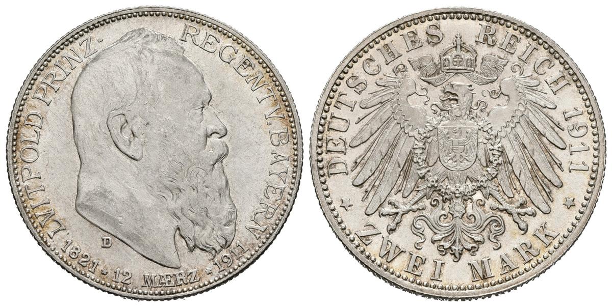 ALEMANIA. 2 Marcos (Ar.11,07g/28mm). 1911. Baviera. (Km#997). 90 aniversario del nacimiento del Príncipe Leopoldo. EBC.
