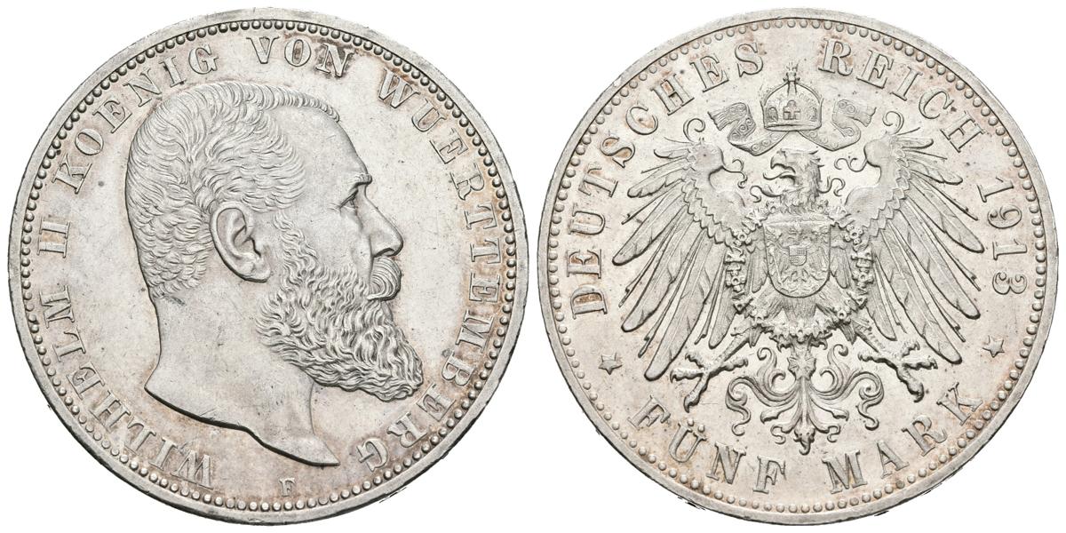 ALEMANIA. 5 Marcos (Ar. 27,74g/38mm). 1913. Wuerttemberg (KM#632). EBC.