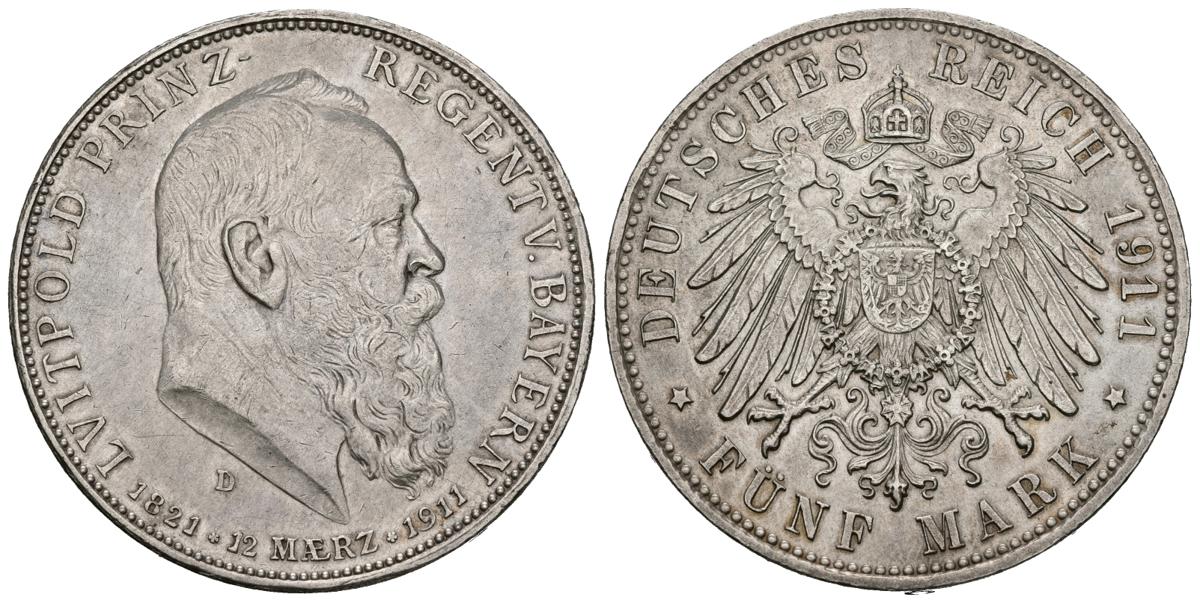 ALEMANIA. 5 Marcos (Ar. 27,76g/38mm). 1821. Baviera. (Km#999). Príncipe Leopoldo. EBC.