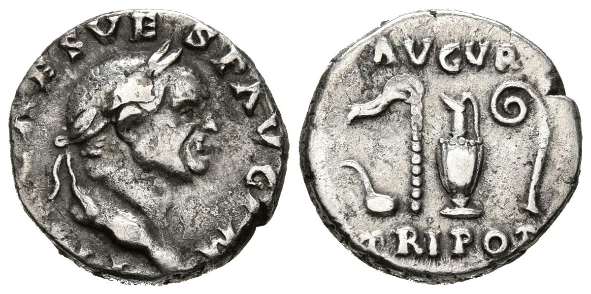 VESPASIANO. Denario. (Ar. 3,16g/17mm). 72-73 d.C. Roma. (RIC 356). MBC-.