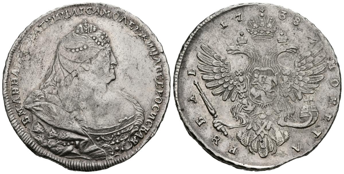 RUSIA. 1 Rublo. (Ar. 25,86g/40mm). 1738. San Petesburgo. (Km#204). Ana I de Rusia. MBC+. Rara.