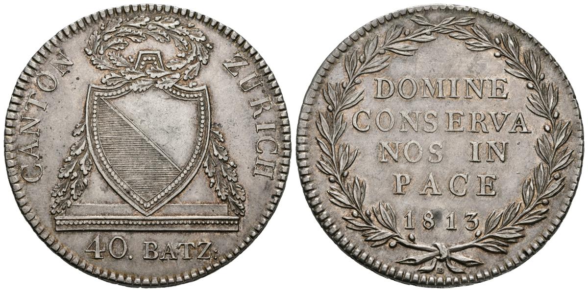 SUIZA. 40 Batzen. (Ar. 29,29g/40mm). 1813. Berna B. (Km#191). MBC+