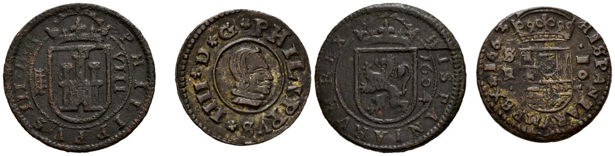 MONARQUIA ESPAÑOLA. Conjunto de 2 piezas de cobre de los reinados de Felipe III y Felipe IV. Diferentes estados de conservación. A EXAMINAR.