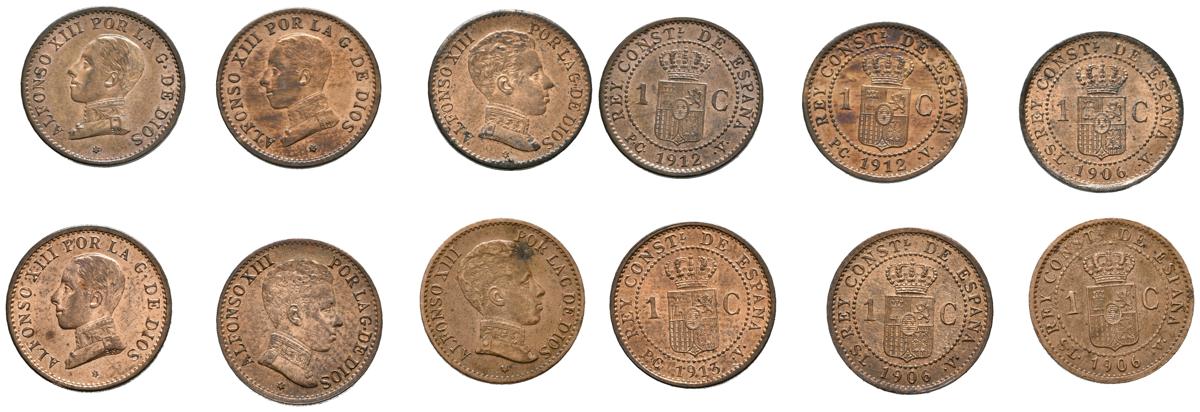 CENTENARIO DE LA PESETA. Conjunto de 6 monedas de 1 Céntimos de Alfonso XIII. Incluye diferentes fechas de acuñación. Diferentes estados de conservación. A EXAMINAR.