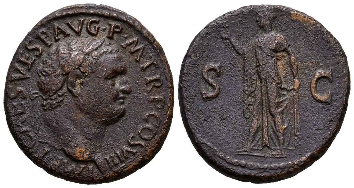 TITO. As. (Ae. 12,28g/26mm). 80-81 d.C. Roma. (RIC 237). MBC+. Rara. Bonita pátina rojiza.