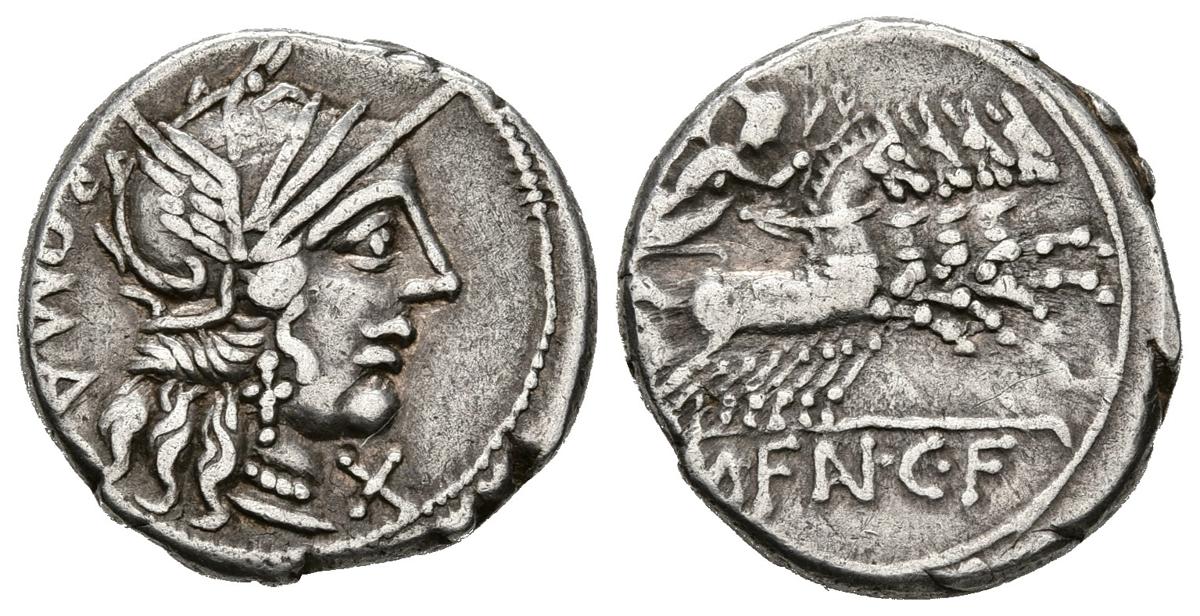 GENS FANNIA. Denario. (Ar. 3,93g/18mm). 123 a.C. Taller auxiliar de Roma. (Crawford 275/1; FFC 705). MBC+.