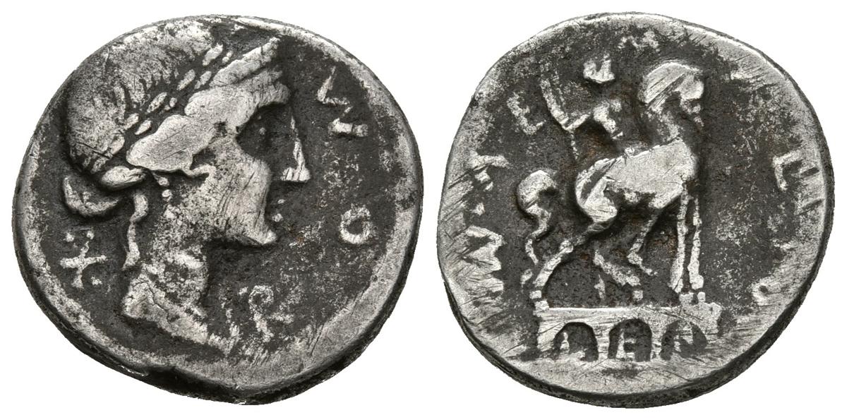 GENS AEMILIA. Denario. (Ar. 3,55g/13mm). 114-113 d.C. Sur de Italia. (Crawford 291/1; FFC 103), MBC-.