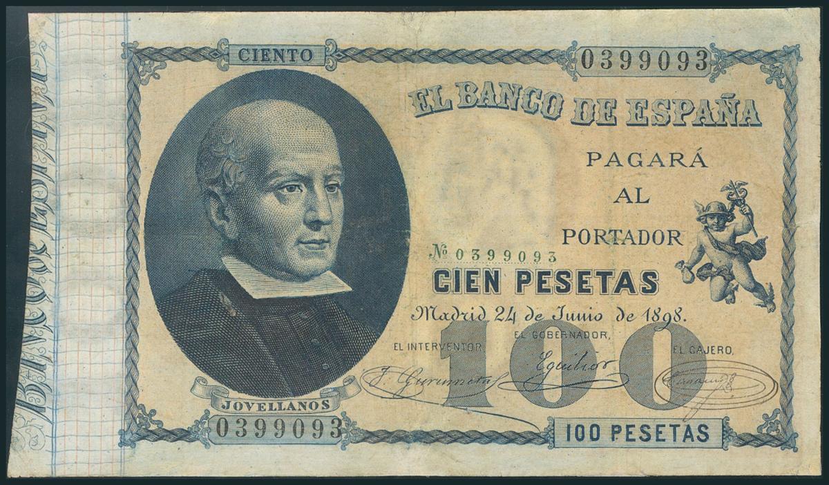 100 Pesetas. 24 de Junio de 1898. Sin serie. (Edifil 2017: 305). Restaurado. BC+.