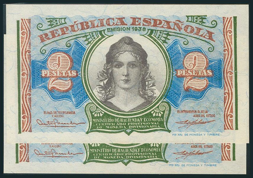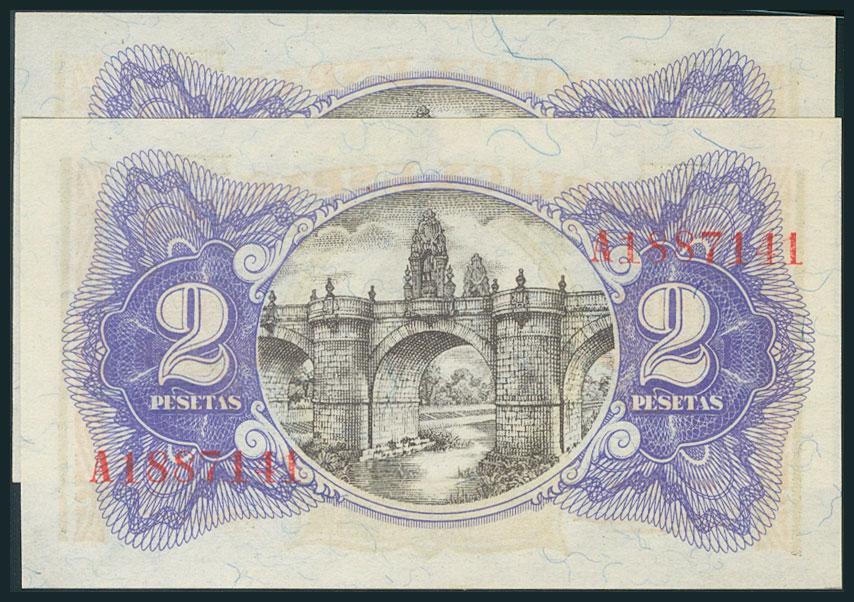 2 Pesetas. 1938. Pareja correlativa. Serie A. (Edifil 2017: 393). SC.
