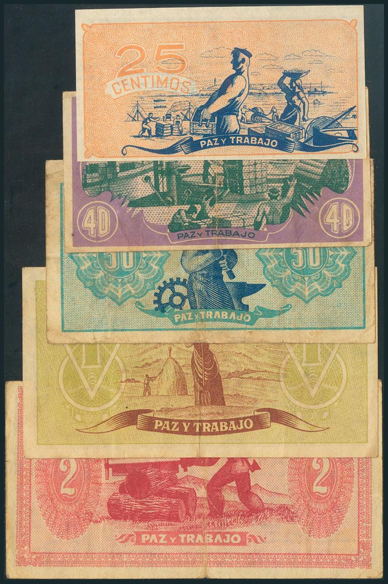 Serie completa del Consejo de Asturias y León, emitidos en 1937 correspondientes a los valores 25 Céntimos, 40 Céntimos, 50 Céntimos, 1 Peseta y 2 Pesetas (Edifil: 394/98). SC/BC.