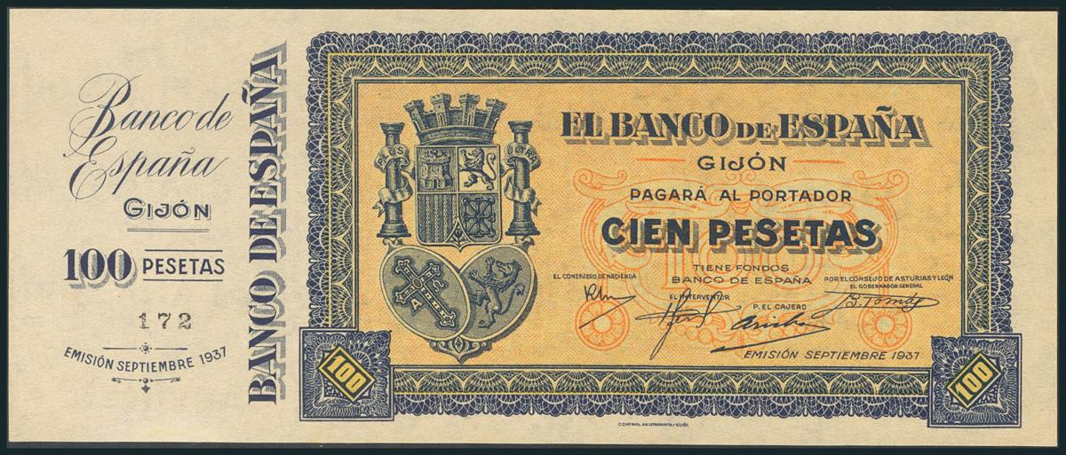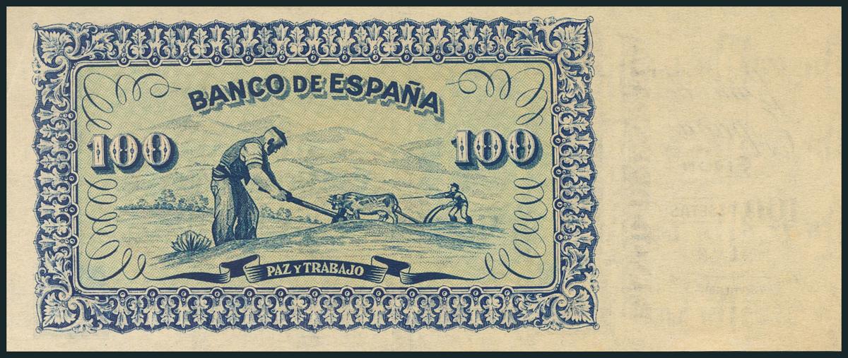 100 Pesetas. Septiembre de 1937. Sin serie y con matriz a la izquierda. (Edifil 2017: 399a). Apresto original. EBC+.