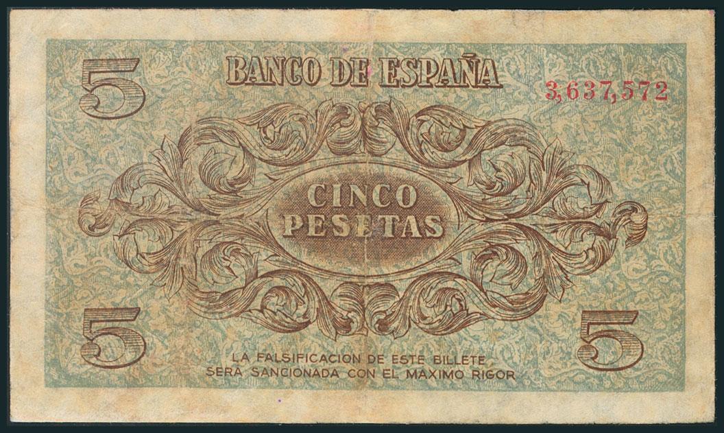 5 Pesetas. 21 de Noviembre de 1936. Sin serie. (Edifil 2017: 417). MBC-.