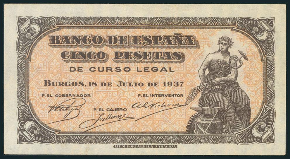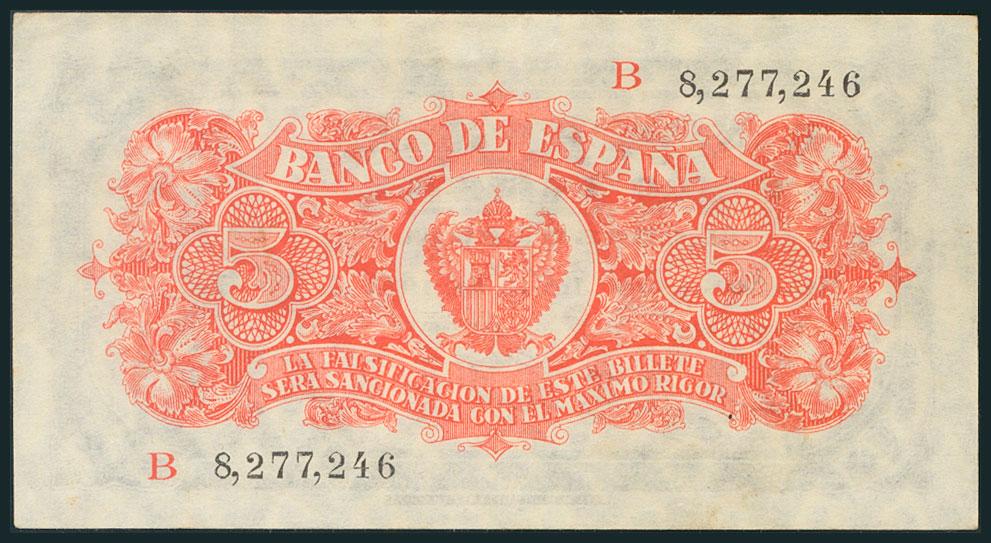 5 Pesetas. 18 de Julio de 1937. Serie B. (Edifil 2017: 424a). EBC.