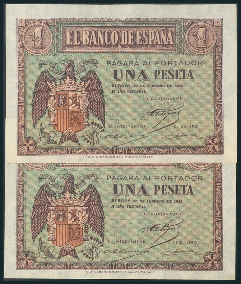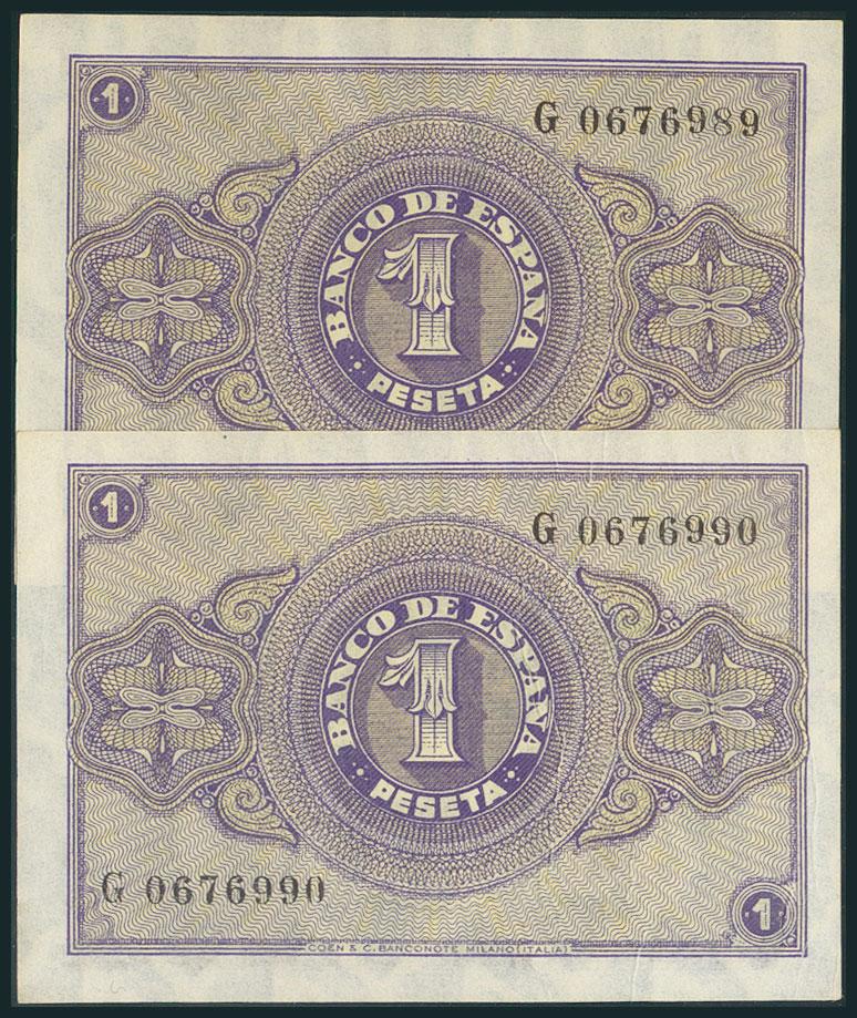 1 Peseta. 28 de Febrero de 1937. Pareja correlativa. Serie G, rara. (Edifil 2017: 427b). EBC+.