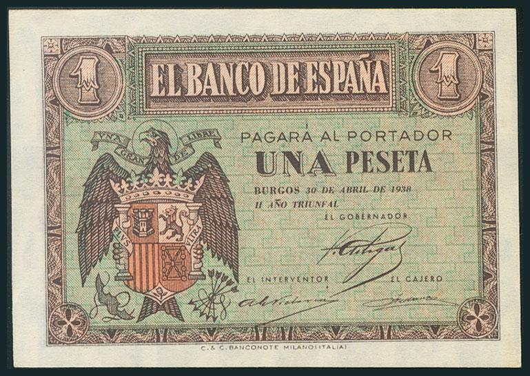 1 Peseta. 30 de Abril de 1938. Serie D. (Edifil 2017: 428a). Apresto original. SC.