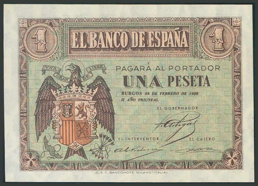 1 Peseta. 30 de Abril de 1938. Serie E. (Edifil 2017: 428a). SC.